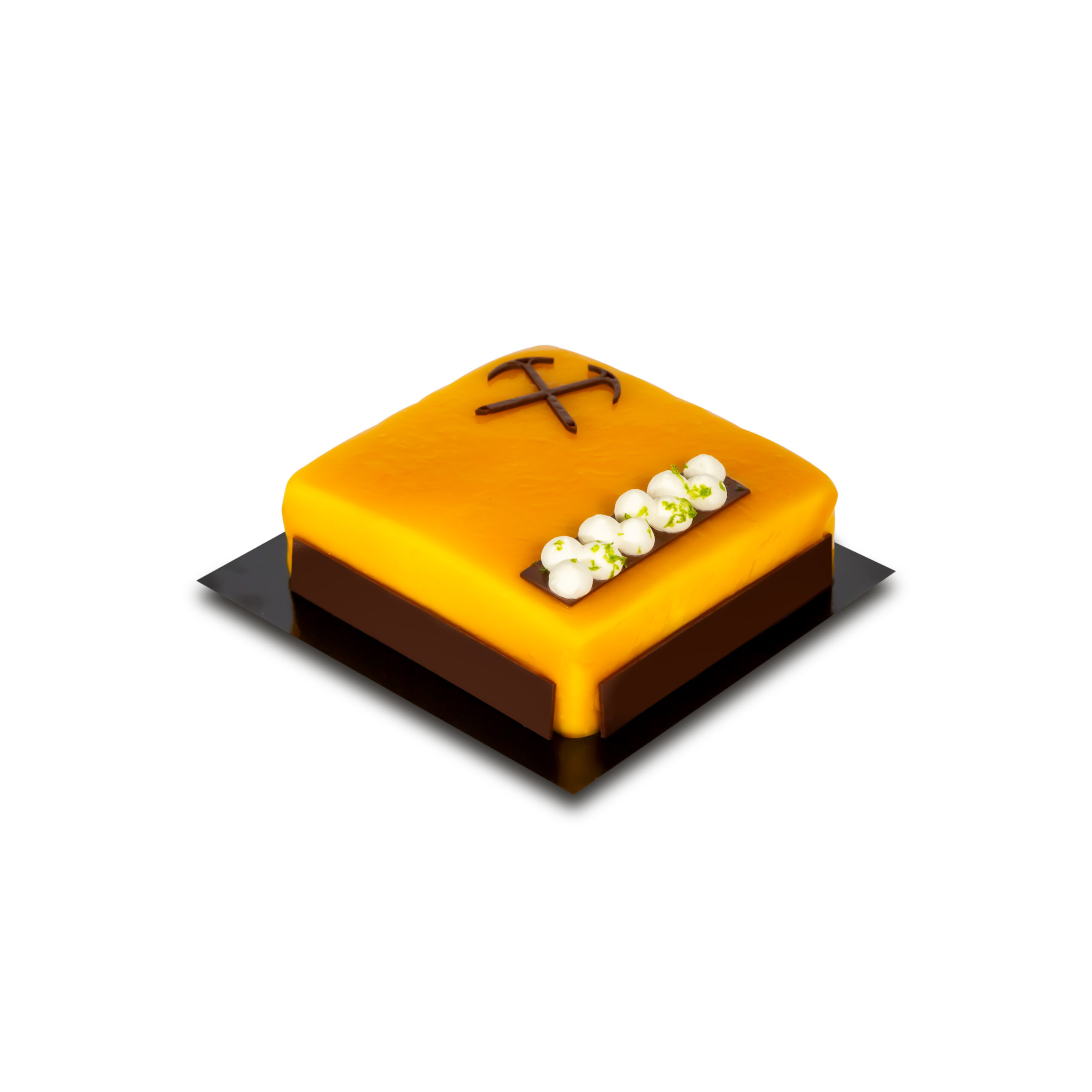 Ingredients: Mango puree, lime juice, sugar, water, whole cream, passion fruit puree, egg whites, milk and dark chocolate (cocoa beans, cocoa butter, sugar, whole milk powder, skimmed milk powder, whey, butter, emulsifier ( soya lecithin), barley malt extract, natural vanilla extract), eggs, egg yolks, butter, coconut, olive oil, wheat flour, invert sugar, gelling agent: edible gelatin (pork), sunflower oil, fresh mint, lime zest, fresh basil, egg white powder, fruit pectin, iodized table salt, Madagascar vanilla, hazelnuts, gold leaf.